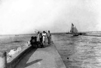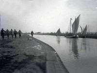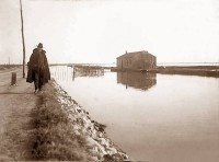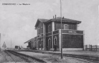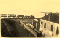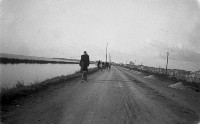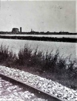 02d-1932 Treno sull'argine Comacchio-Portogaribaldi (canale Pallotta).Chissà quanti comacchiesi ancora viventi hanno fatto in tempo a prendere quel treno.jpg